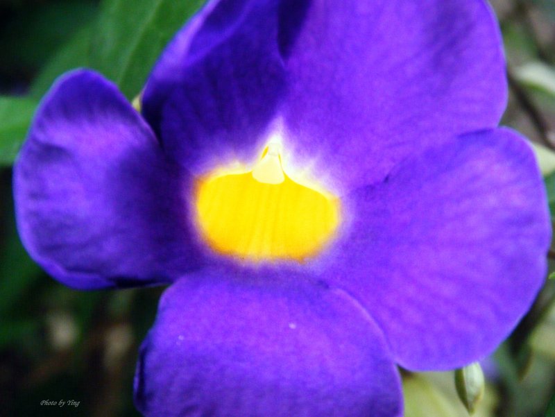 如熱帶海洋湛藍花色配上亮黃色的花喉,強烈對比的配色技巧,在這朵花中完美的展現。彷彿在花朵深處點一盞亮黃的燈,今晚就用它來點燈。晚安!!